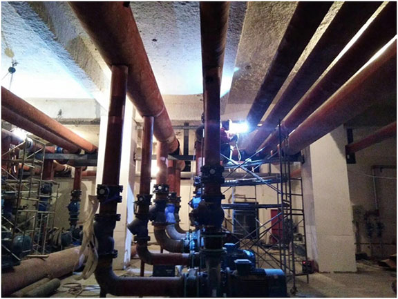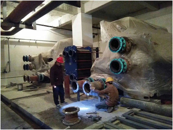 工程简介:吴忠万达广场位于宁夏吴忠市利通区,北靠开元大道,东临利宁北街,西接黎明街。本次项目工程范围为一期工程中的1#楼购物中心、2#商业、3#办公楼,K1楼地下设备用房、车库、超市。建筑层数:4层(局部5层)。万达大商业冷冻站设在地下一层。大商业计算冷负荷为10383.4KW,因为甲方多次进行方案变更与调整,提出了诸多施工问题,例如冷却塔的安装位置、制冷机房设备的布置、水系统管道的布线方式等,我方积极对甲方提出的问题与方案进行了解答与探讨,使得施工能够快速稳定进行。