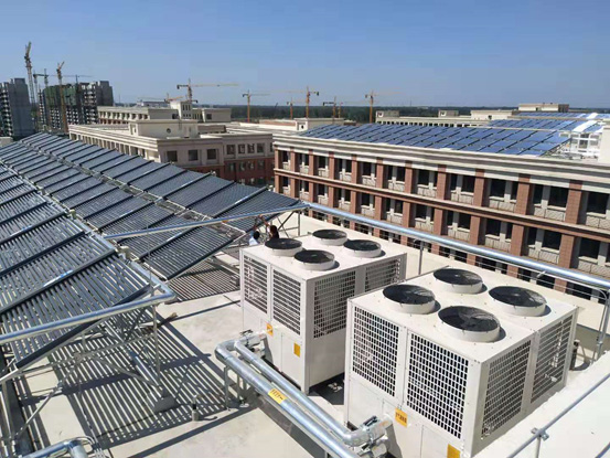 工程简介:山东商河西城区高级中学位于苏家路以东, 孟西路以西,教育及教学研究建筑面积24000平米,共有九年一贯制学校宿舍楼两栋,高中学生宿舍三栋,所有宿舍楼的生活洗浴热水全部由太阳能+空气源热泵系统解决,此项目为商河西城区教育集团PPP项目,全部热水系统的设备及安装由格瑞德集团提供并实施。