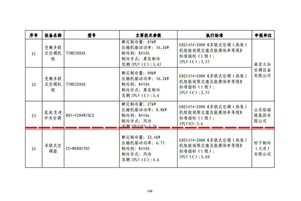 2016年9月28日,国家工信部发布了《节能机电设备(产品)推荐目录(第七批)》,我集团的水冷柜机(PCW45)和直流变速中央空调(RXV-V280W/SC2)两项产品被列入,现已在工信部网站进行公示。