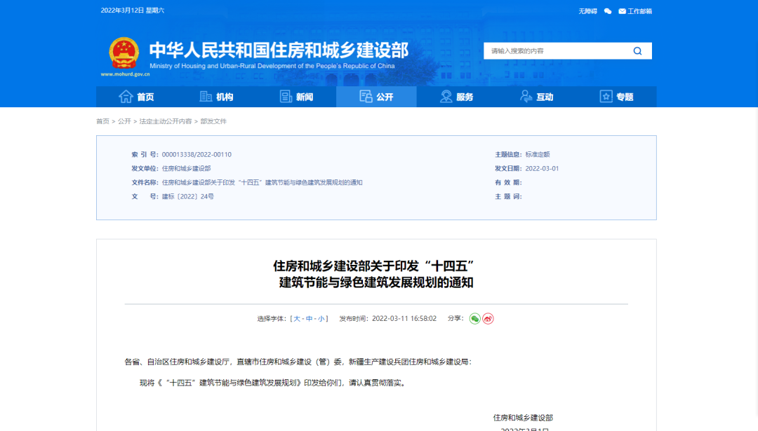 住房和城乡建设部关于印发“十四五”建筑节能与绿色建筑发展规划的通知。