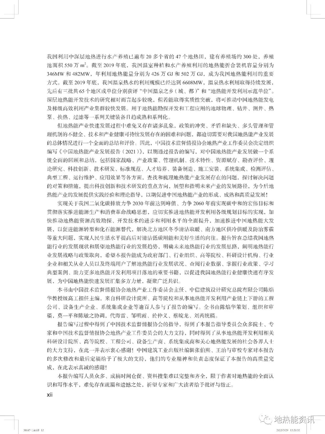 近日,由中国技术监督情报协会地热产业工作委员会组织编写的《中国地热能产业发展报告(2021)》正式对外发行。本书由中国技术监督情报协会地热产业工作委员会主任、中信建筑设计研究总院有限公司教授级高工陈焰华担任主编。该书编写过程中得到了众多院士、专家的悉心指导和大力支持,来自全国科研设计院所、高等院校和从事地热能开发利用产业链上下游的工程公司、设备生产企业、系统集成企业等逾百人参与了报告的编写。