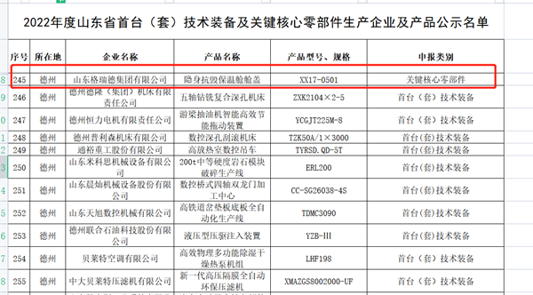 7月12日,格瑞德集团荣获德州市“助企开门红”奖励资金10万元。7月13日,格瑞德集团隐形抗毁保温仓入选2022年度山东省首台(套)技术装备和关键核心零部件推广应用指导目录公示。同时,此产品技术评定为国内领先技术。荣获德州市配套奖补资金20万元。