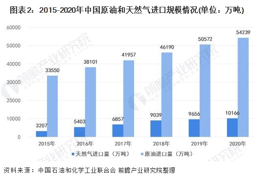首先是保障国家能源安全的要求:一方面我国油气对外依存度不断上升,根据中国石油和化学工业联合会数据,2015-2020年中国原油和天然气进口规模逐年增长(表1-2),2020年中国进口原油约5.42亿吨,同比增长7.3%;进口天然气1.02亿吨,同比增长5.3%;原油对外依存度达到73.5%,天然气对外依存度达为42.0%,预计未来几年我国油气对外依存度还将继续上升。另一方面我国新增探明油气地质储量降至近10年来最低点,随着高品质常规油气资源储量的减少,我国油气资源开发正日益转向超深油气、页岩油气、深水油气、煤层气等领域,而这些资源的开采由于技术难度较大、成本高,效益开发难度大。因此,实现由传统油气资源开发向油气与新能源开发并重的能源转型,是保障国家能源安全的必然选择。