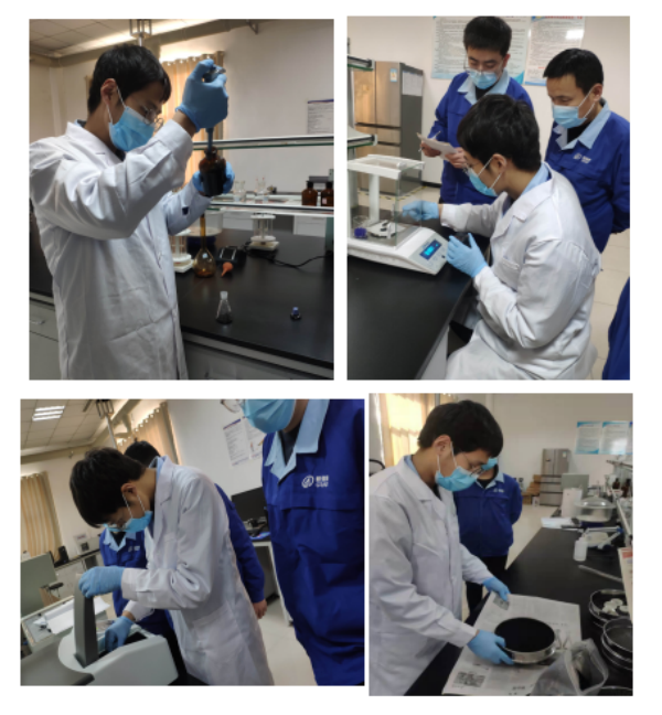 进行车间质检时,他从饱和炭入库取样,再到再生活性炭出料,一直在对活性炭指标进行追踪。在车间对每一包活性炭进行初步成品检验,严格监督活性炭进厂材料的质量、型号、规格,监督各项活性炭项目工艺施工班组操作标准。