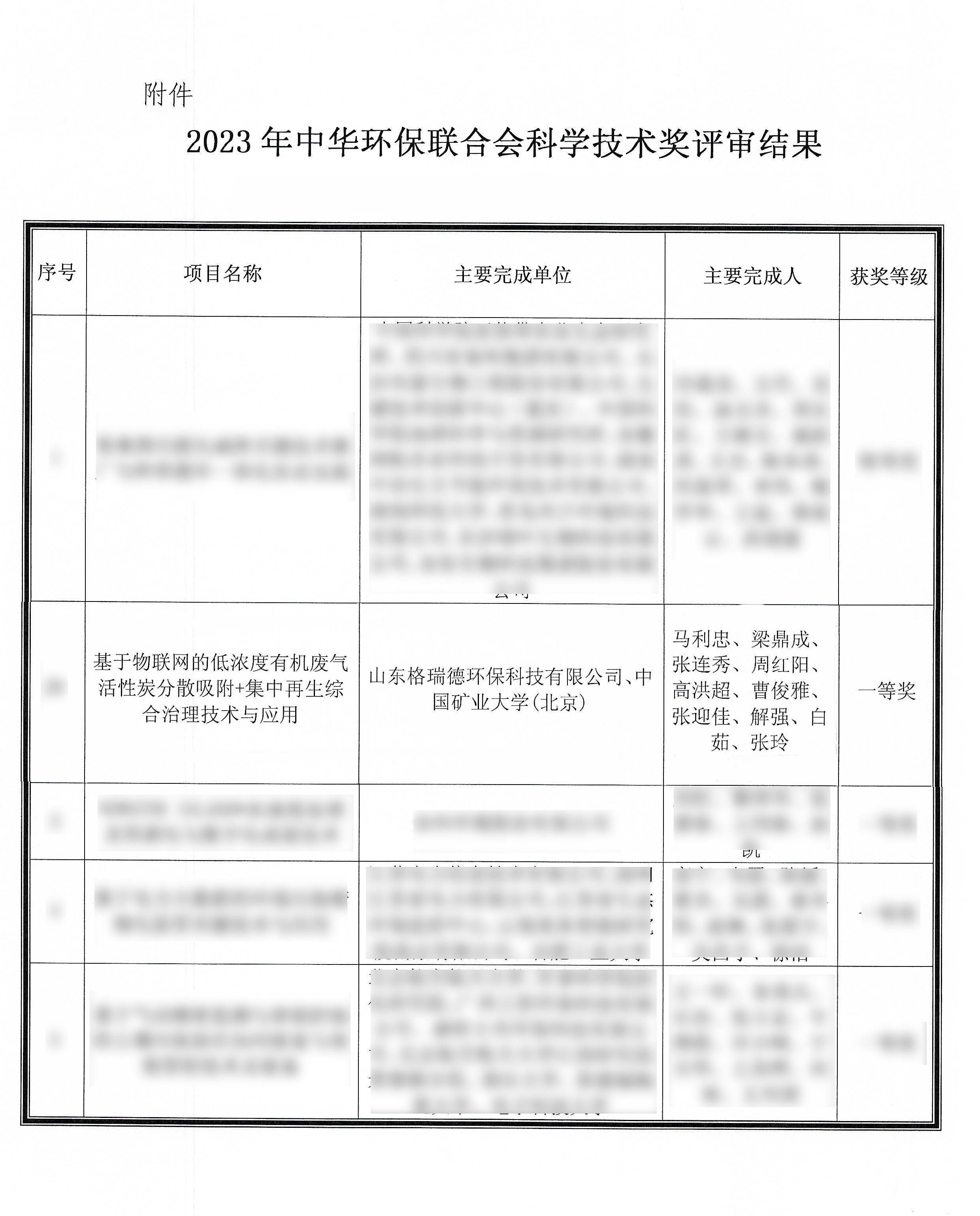 近日,中华环保联合会公布《关于公示2023年度科学技术奖评审结果的公告》,由山东格瑞德环保科技有限公司、中国矿业大学(北京)联合申报的《基于物联网的低浓度有机废气活性炭分散吸附+集中再生综合治理技术与应用》项目荣获2023年度中华环保联合会科学技术奖一等奖。