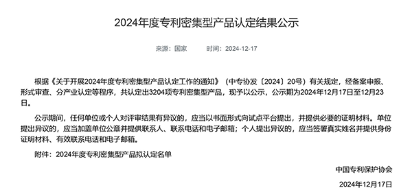 专利密集型产品的认定,不仅提升了集团的品牌形象,向社会展示了集团在知识产权保护和创新方面的工作成效。也将进一步激励技术人员不断创新,开发出更多具有高附加值的专利产品,推动集团持续高质量发展。