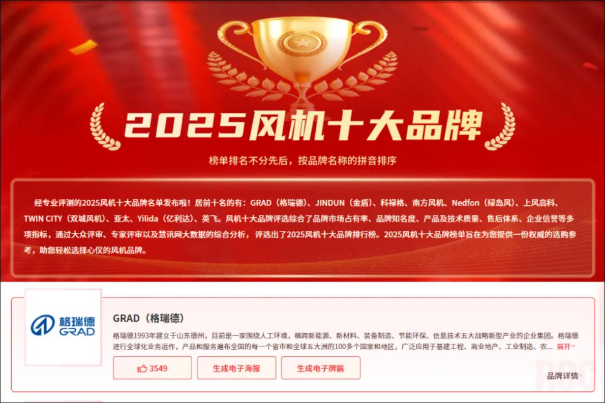权威认可!格瑞德集团荣登2025中国风机十大品牌榜单!