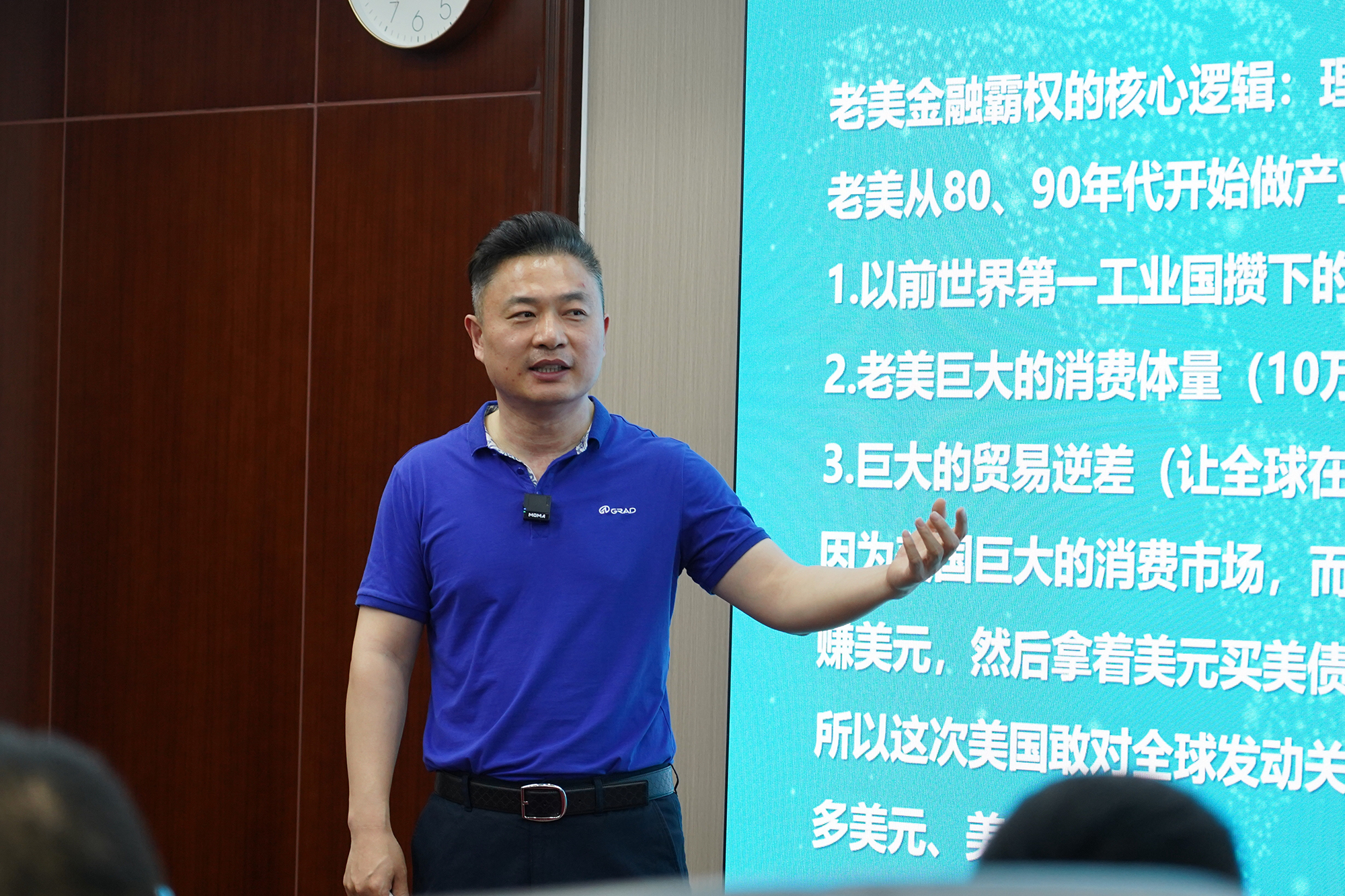 格瑞德销售二部部长杨家兴向现场及线上参与的业务菁英分享“借船出海”的具体行动路径,并精准指出间接出口项目操作中相关的风险点,从操作层面为业务菁英涉外项目规避风险保驾护航。
