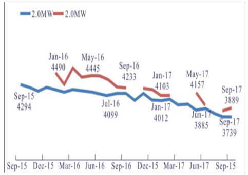 风电机组部分机型投标均价走势变化(元/千瓦)