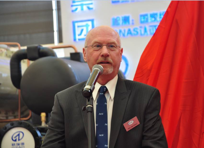 北极制冷公司国际销售总监Mattingly先生,对北极Arctic制冷集团作为简单的介绍,北极制冷公司作为使用和推广无油磁悬浮压缩机的先锋,在设计、生产当今市场上高效的冷水机组上都名列前茅,为中央空调系统解决方案提供了广泛的产品和选项。