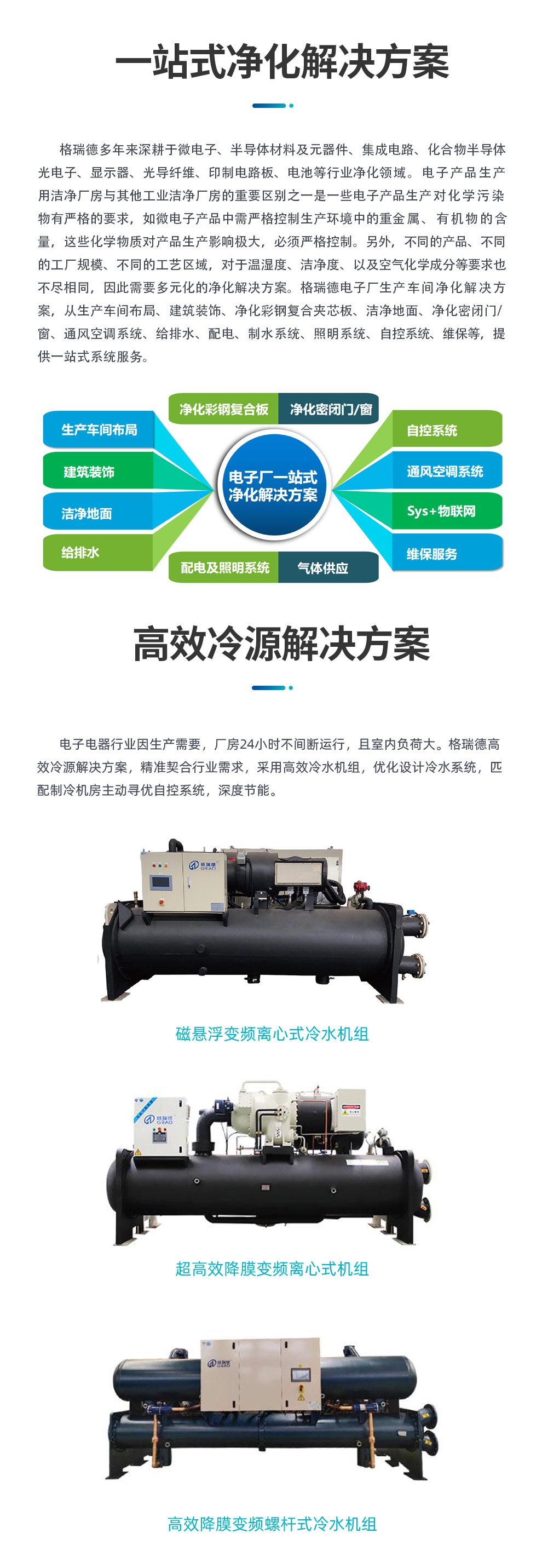 格瑞德致力于让人工环境更美好,通过打造空调工程、通风人防、复合材料、环保工程领域的全过程解决方案来满足客户需求,格瑞德构建了包括品牌规划、系统设计、技术开发、产品制造、整体施工、维护服务、检测认证、人才交流、产业集群的全生命周期产业链和产业生态。