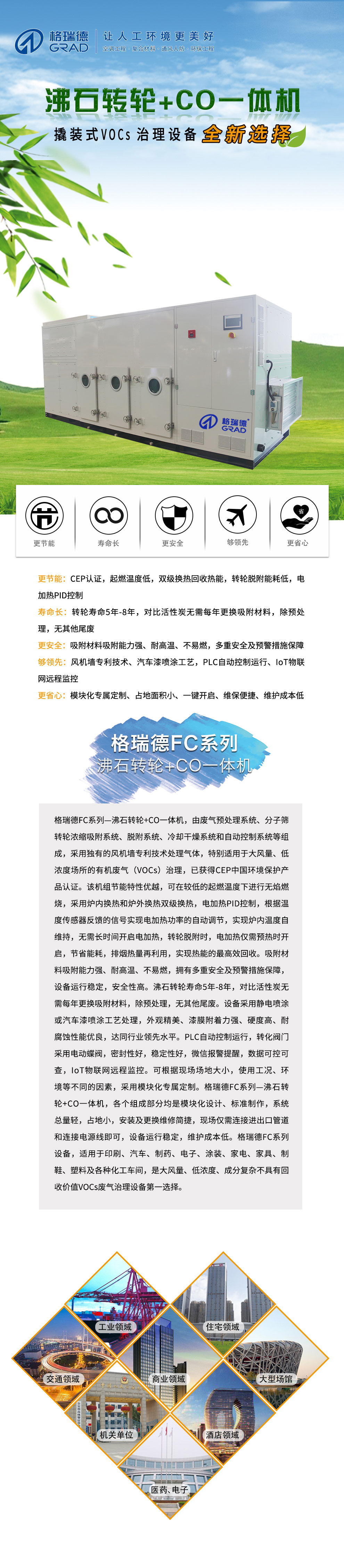 格瑞德致力于让人工环境更美好,通过打造空调工程、通风人防、复合材料、环保工程领域的全过程解决方案来满足客户需求,格瑞德构建了包括品牌规划、系统设计、技术开发、产品制造、整体施工、维护服务、检测认证、人才交流、产业集群的全生命周期产业链和产业生态。